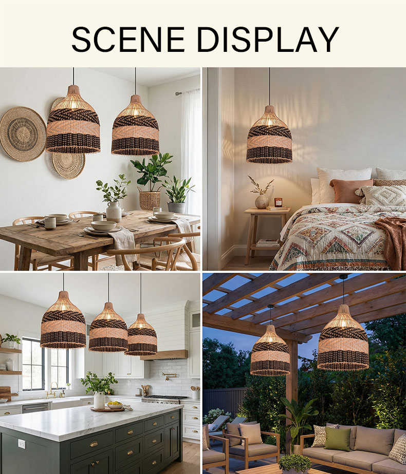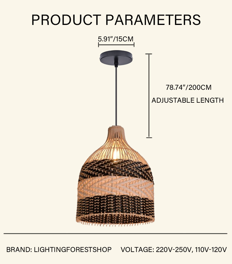 Elevate your interior design with our Two-Tone Rattan Bell Pendant Light. Featuring a stunning contrast between natural wood tones and bold black accents, this handwoven masterpiece brings a sophisticated yet relaxed "island-chic" vibe to any setting. Whether hanging over a sleek bar or a rustic dining table, it serves as a captivating focal point.