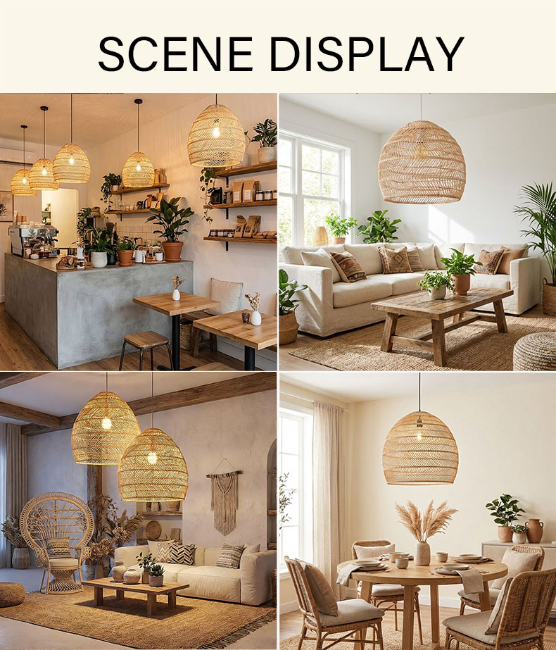 Natural Rattan Dome Pendant Light Wicker Hanging Lamp for Cozy Living Room Dining Room