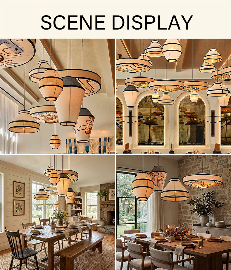 Elevate your interior with our Artisan Mixed-Shape Pendant Collection. This isn't just lighting; it’s a curated installation of light, texture, and hand-drawn storytelling. Each shade features unique, whimsical illustrations—from Mediterranean fish to organic botanical lines—rendered on premium natural linen and woven fabrics.